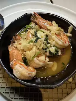 - Garlic Tiger Prawns with Spicy Herbs 🦐: Fresh and large tiger prawns with a rich garlic flavor that fills the air. The sauce is so delicious you’ll want to scrape the plate clean—sooo good!