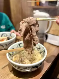 The portion of beef is not small. Thinly sliced A5 Wagyu beef is tender enough and has a fragrant grease