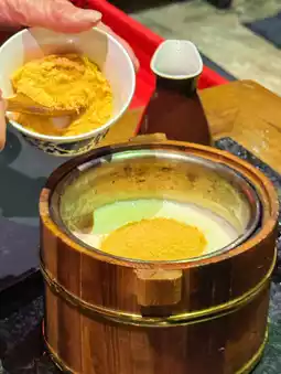 After eating, they were given a bucket of tofu. The shopkeeper added red sugar and then lit it on fire. You can see and eat ❤️🔥