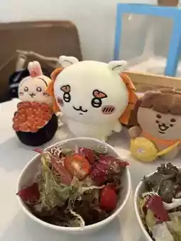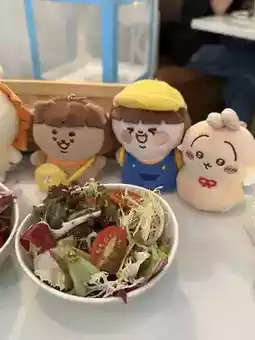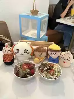 On Sunday, a weekend off, I took my friends Puffy, Usagi, and Shisa to Chiikawa Day in Tsim Sha Tsui. We then went to a nearby Western restaurant with a simple, earthy-toned decor. It exuded a hipster vibe and was packed with young people and families for dinner, dessert, and coffee. The prices were reasonable and the atmosphere was comfortable, making it a great place for a meal.