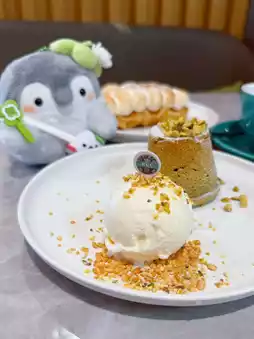 Dessert is simply a foul: pistachio heart too soft cut open to have melted burst out, nutty fragrance is very prominent, with smooth vanilla ice cream, hot and cold intertwined really great ❤️ Another homemade cotton candy croissant waffle is quite special, crispy outside and soft inside, cotton candy slightly sweet and soft, selling is quite eye-catching😚