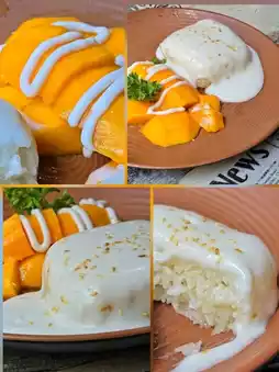 We also ordered mango sticky rice for dessert. The mango is fragrant and sweet without being sour, and the sticky rice is warm and chewy. Drizzling coconut milk over it makes it incredibly satisfying.