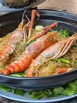 The giant prawns are split open and baked with glass noodles and garlic. The prawn meat is firm and bouncy, while the glass noodles soak up the essence of the prawn roe and garlic, making the dish aromatic and flavorful.