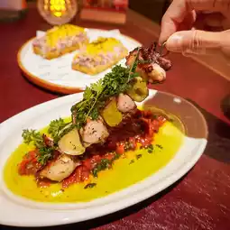 The grilled octopus skewers are slightly browned on the surface, tender and chewy and Juicy sauce made from spices, onions, etc., a bit like Pestro sauce, quite special!