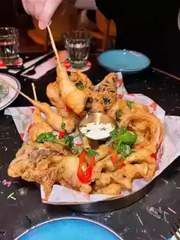The fried fries are dipped in our homemade tartar sauce for a crispy and flavorful finish.