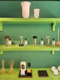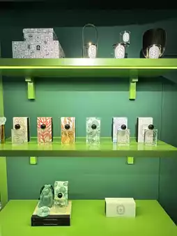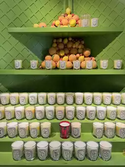 The Diptyque Museum in Hong Kong is located on Hollywood Road in Mid-Levels, Central, across from Gong Li Sugarcane Juice. Dang Street is a local historic city area surrounded by many historical buildings, blending in with Diptyque’s green floor decor, and overall artistic vibe.