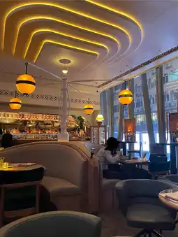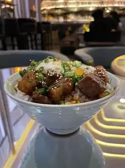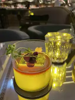 The bar features a sleek setting with soft lighting that brings a relaxing atmosphere while offering a wide variety of cuisines.