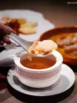 I tried a few signature dishes, the steamed shrimp balls with chicken oil and royal egg whites are really amazing! The egg white is so smooth that it looks like eating clouds ☁️, the shrimp balls are big and bouncy, and the best part is the chicken oil and wine aroma, which is rich and doesn't steal the spotlight. The other caramelized pineapple sweet and sour pork is also worthy of praise, using caramelized pineapple instead of canned pineapple, sweet and sour balance just right, the crispy syrup thin like a female star foundation so natural, definitely a work of sincerity! Stewed soup is even more real work, deer antler mushroom yellow jade ginseng snail head stewed chicken, drink to know no MSG added, real ingredients boiled out, drink the whole person warm ❤️.