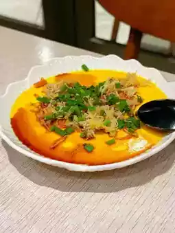The steamed egg with dried scallops is a simple home-style dish, but achieving a smooth and perfectly steamed texture is no easy feat.