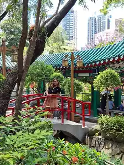 Behind Wong Tai Sin Temple 🌸, a place many people are familiar with as a place to pray and make merit, there's actually another beautiful and peaceful spot: the Chinese garden behind the temple. 🌿🌺 Don't forget to head inside, where you'll find a traditional Chinese garden with a fish pond. Unfortunately, there was no water when we arrived, so we were disappointed. There's also a small bridge and a pavilion for relaxing. 🐟