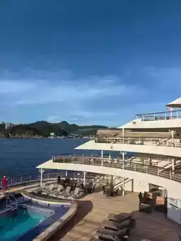 The highlight of the day is in the evening! Head to the theater for performances, including musicals and acrobatics, with an amazing atmosphere. After the show, go up to the top deck to stargaze. With the sea breeze and the stunning starry sky, it feels like being in another world.