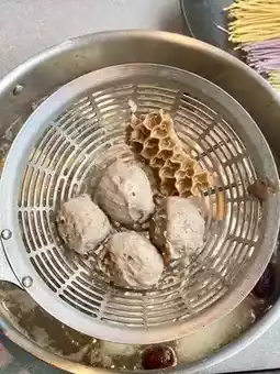 I also recommend the hand-beaten beef balls double here, all hand-beaten, bite and the juice burst out, really fragrant, after eating you can also take away his beef balls home 👍🏻 boiled to the end can add fruit and vegetable three-color noodles, healthy and filling.