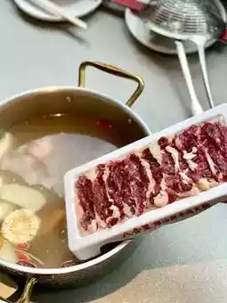 First of all, its original beef bone soup is very good, when the staff pours the soup I can smell the fragrance, to boil this fresh meat four treasures platter is really great 👍🏻 This platter can eat the toe meat, hanging dragon companion, spoon meat and spoon handle at once, eat four different tastes of beef at once, really good 😎 In addition, add a plate of freshly cut fat beef, so it's perfect, satisfying 😌