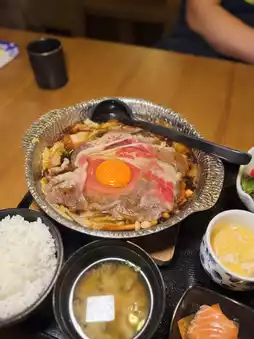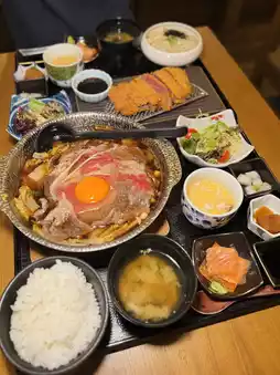 Hot Kansai style sukiyaki🍲! The beef is infused with sweet soy sauce soup - there are tofu, wild vegetables 🥬, and vermicelli 🍠 at the bottom, and it's satisfying with pearl rice. If it's served with udon, it's certainly even better😋.