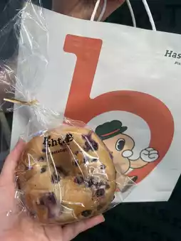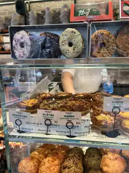 Blueberry Cream Cheesebagel The bagel is smoky and chewy, and some fresh blueberries plus dried blueberries are sweet and chewy. And can eat some cream cheese flavor.