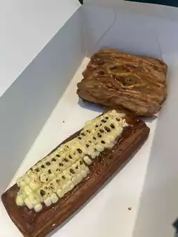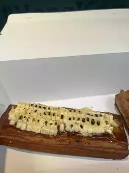 White corn pastry This one looks excellent, it uses fruit white corn to add a sweet taste. And the pastry was very crunchy, plus some cheese sauce and honey. And not too missing flavor rich.