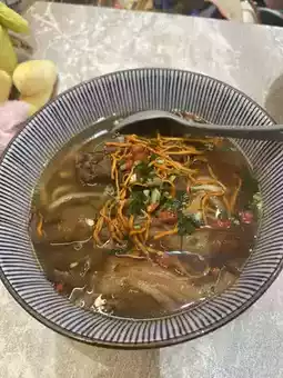 I also opted for the extra-large bowl of the Medicinal Huadiao Half-Tendon Half-Meat Handmade Noodles, which comes with two slices of beef tendon and two large chunks of beef. The quality is just as good as the Beef Three Treasures. The noodles are also chewy and firm, with a thicker texture. The medicinal broth is moderately flavorful and clear, and comes with cordyceps. Flower, wolfberry, and chopped green onion—very healthy!