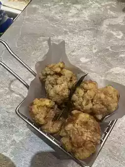 For a snack, we chose crispy chicken, a classic Taiwanese night market snack. The chicken pieces are marinated with five-spice powder, coated in sweet potato starch, and deep-fried at high heat. Basil is then added to sauté and sprinkled with pepper and salt. The crispy texture and rich aroma are truly a favorite.