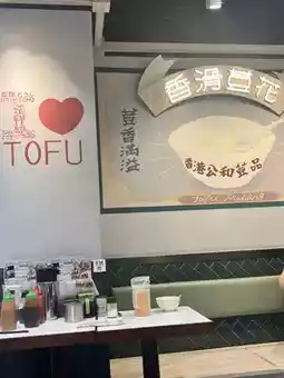This is a specialty bean product store with a very cute decor. The walls depict the traditional bean product-making process. I ordered Kung Wo Three Treasures, frozen tofu pudding, and rice noodle rolls. The Gonghe Three Treasures consists of tofu, fried bean curd, and fish curd. The golden tofu tastes ordinary, while the fried bean curd is crispy on the outside and soft on the inside, with every bite bursting with fishy flavor. The fish curd has a distinctive tangerine peel flavor.