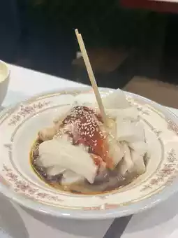 The rice rolls are topped with peanut butter and sesame paste and are surprisingly delicious.