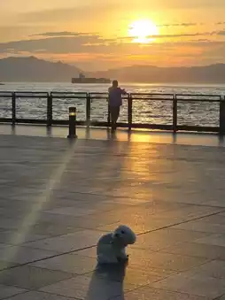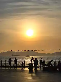 The sun slowly approached the sea level, dyeing the edge of the sky orange-red with pink-purple, the sea turned into a swaying gold foil, and even the ships in the distance became silhouettes. Wait until the last ray of light falls, and the sea breeze will bring a little coolness before you are willing to leave.