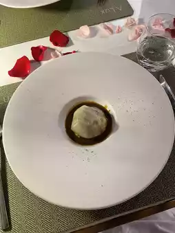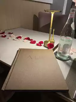 Tonight I came to a romantic and romantic restaurant with rose petals on the table. It felt sweet.