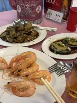 3. Paradise Seafood Restaurant: A Taste of Fresh Seafood Lunch was at Paradise Seafood Restaurant in Sok Kwu Wan, a long-established restaurant renowned for its fresh seafood. I ordered a meal for two ($400) that included boiled shrimp, sweet and sour pork with pineapple, steamed abalone, and stir-fried clams with black bean and pepper. The shrimp is bouncy, the sweet and sour pork is tender, and the flavors are rich and varied! π€ Enjoy a sea view seat inside the restaurant while watching the waves crashing on Sok Kwu Wan. It's the perfect end to your day trip. π· Photo Tip: For close-ups of the seafood, blend the sea view windows into the background to highlight the vibrant colors and the waves.