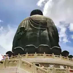 Ngong Ping is located on the western plateau of Lantau Island in Hong Kong, surrounded by hills and natural beauty. Key attractions on the island include Ngong Ping Village, Po Lin Monastery, and the Big Buddha, the world's largest outdoor bronze Buddha statue. Standing 34 meters tall and made from 160 bronze pieces, it weighs 250 tons.