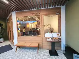 Potluck Eatery is located in the Tsim Sha Tsui area and features a minimalist industrial wooden design. The spacious interior includes a large mural and small wooden stools, providing a relaxing atmosphere for guests.