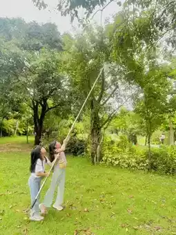 Upload seasonal fruit upon entry. Children weigh one pound, adults two pounds, and then you can pick one pound of fruit from the trees yourself. :) Today, we were picking longans, which required hooking them with a super-long pole and net. It looked incredibly challenging, and it wasn't! The kids brought their little baskets to pick their own fruit, enjoying it as they went, and it was so sweet!