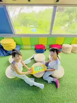 This is a small, double-decker space. The lower level is reserved for private seating, and upstairs is a play area where you can even watch movies in the evening!