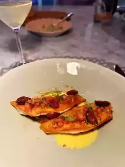 Crispy Skin / Kalamata Olive & Onion Marmalade / Vierge Sauce