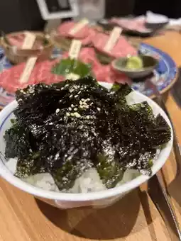 The meal was finished with seaweed rice, where the subtle seaweed aroma blended with the lingering fat of the beef.