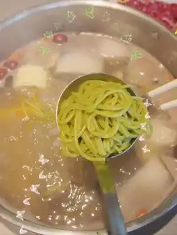- Fruit and vegetable three-color noodles: a bowl at the end of hot pot, fresh and filling