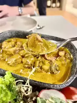This Southeast Asian Nyonya-style dish is mildly spicy with a fragrant coconut milk aroma. The curry chicken is well-marinated, accompanied by onions, green peppers, and potatoes, making it a hearty and flavorful dish.