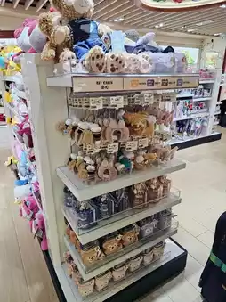 The shop is located on the departure level, before immigration. It's quite large and has a huge selection of merchandise. You could say they carry almost every character, from small plush toys to jumbo plush toys. They also have a huge selection of key chains, both soft and hard, t-shirts, and other items with unique designs. There are also limited edition items. They also have stationery, luggage tags, tote bags, and even cups.