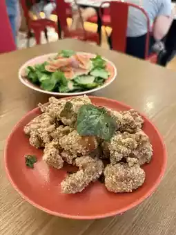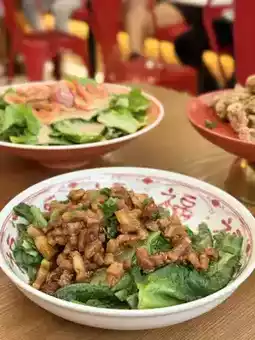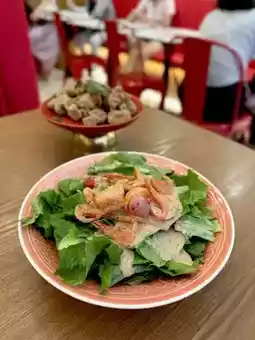 Ordered the 2-person meal, cherry shrimp sesame sauce A dish, a salad dish, fresh enough portion and good. Yam and goose bone soup, the soup is rich and sweet. Stuffed meat and seasonal vegetables, stewed meat is fat but not greasy.