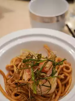 Adding coriander, mushrooms, and tofu, it creates a rich, layered flavor. ✨The crispy deep-fried oysters, wrapped in lettuce, perilla leaves, and a sour, fragrant tartar sauce, are crispy, tender, and juicy. ✨The crispy deep-fried eggplant becomes even smoother after peeling, with no residue at all—a pleasant surprise! ✨The scallion-infused abalone casserole arrives steaming hot, the abalone thick and flavorful, with a hint of scallion aroma. ✨The secret recipe zebra mantis shrimp is a must-try! The salted egg yolk coating is crispy, the shrimp is chewy, and the shrimp paste bursts with flavor. ✨Stir-fried Lotus Root with Vegetables: I personally like the crispy lotus root and mushrooms for a balanced taste. ✨Fresh Shrimp and Scallion Oil Noodles: The noodles are evenly coated with the sauce, and the shrimp balls are large and chewy. ✨Homemade Yakult Cake and Pomelo Cake: A refreshing finish, perfect for a perfect meal.