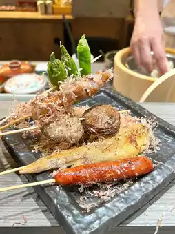 𓏲𓏲 My favorite of the five skewers is the crispy chicken wing.