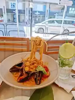 🍝Coconut Tonkatsu Seafood Pasta (Hk$126): The sour and spicy tom yam is distinct, and the spicy taste is stronger!