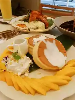 🥞 Thai Soufflé Mango Glutinous Rice (Hk$138): Freshly baked soufflé is fluffy and airy, with sweet mango and slightly alkaline glutinous rice, reconstructing classic Thai desserts!