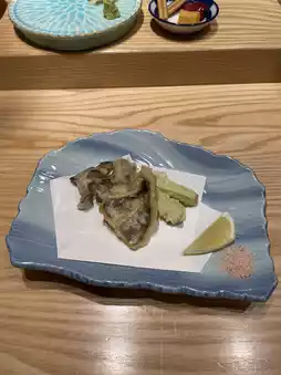 Maitake mushroom, asparagus, sea eel tempura, crispy paste is thin and not greasy, the mushroom flavor of dance mushroom is rich; asparagus is crispy; sea eel is soft and smooth.