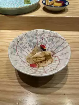 It tastes smooth like tofu and is a little spicy with yuzu sour sauce.