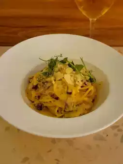 The main course I chose carbonara spaghetti 💛, the preparation is very authentic and worthy of praise, the egg yolk sauce is unbeatable, and a lot of thick smoked pancetta. The dessert with the meal is ice cream🍧, which is really satisfying.