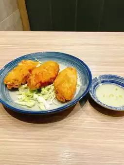 The large balls are fried golden, crispy, and bouncy, with a delicious chew. 🩵