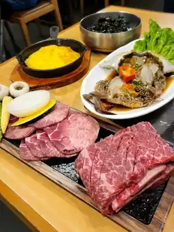 🐄 Premium Beef Short Ribs: These are tender, high-quality beef short ribs 😍, served in large, thick cuts. The staff will grill and cut them for you, and they remain juicy even after grilling 🤤. For extra flavor, you can add garlic slices to the grill, making it even more aromatic. Absolutely delicious!