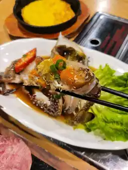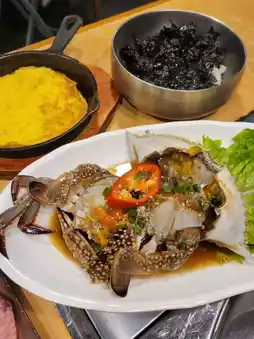 🦀 Soy Sauce Marinated Crab (with Butter Rice): 🦀 Freshly prepared upon order! Packed with flavorful crab roe 💛, which pairs perfectly with the butter rice infused with seaweed. Simply delightful!