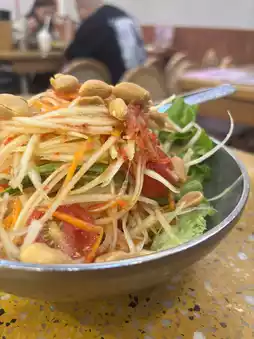 - **Green Papaya Salad**—The shredded papaya is incredibly crispy and has adjustable spiciness (I recommend trying it low).