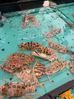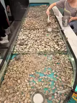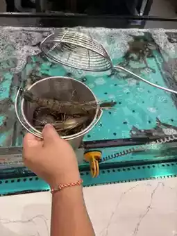 The massive seafood pool isn't just for show! One scoop with the net reveals a riot of delights: shrimp bigger than my face, frantically struggling flower crabs, and even fresh abalone with suckers... The moment you fish it out, everyone's got your attention (get the center position for photos! 📸)!