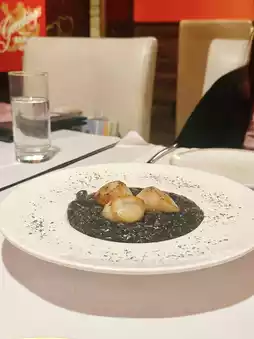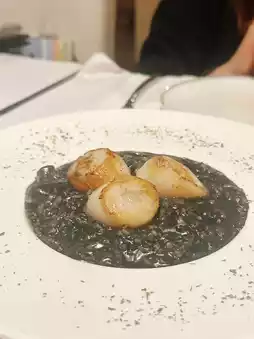 Pan-fried Hokkaido scallop squid sauce pasta 🍚 The scallops are big and tender 🐚 full of freshness 👍🏻 The pasta achieves the taste of Al Dente 😋 I didn't expect a lot of string cheese 🧀 hidden between the rice grains